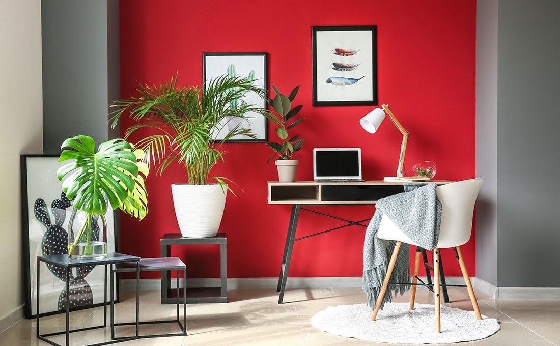 Un rosso ricco e saturo offusca il confine tra moderno e tradizionale. La tonalità è audace ma elegante, e se usato in modo ponderato il colore può essere coinvolgente e suscitare emozioni positive insieme a una carica di energia. Il rosso intenso crea uno sfondo rinvigorente per mobili neutri e accenti ispirati alla natura. Per un look più scenico si può abbinare ad altre tonalità vivaci, come un blu classico o il verde brillante.