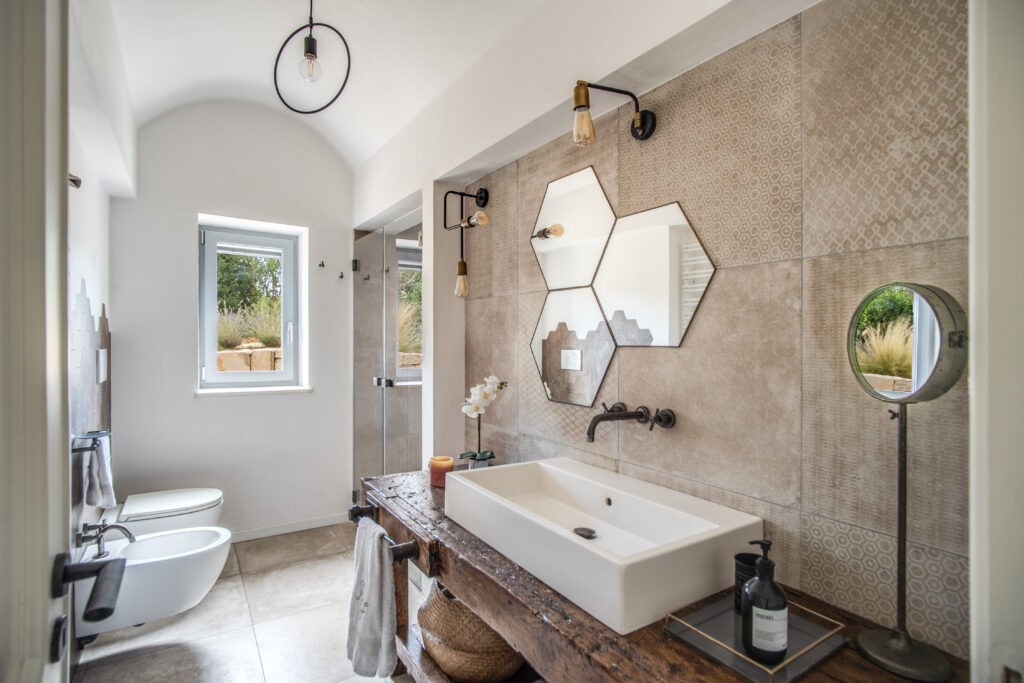 Dal punto di vista funzionale, sono molto apprezzate le rubinetterie a parete o da terra e, per un tocco ancora più sofisticato, è possibile optare per l’inserimento di un sensore touchless o termostatico per l’attivazione del rubinetto. Per quanto riguarda i sanitari, sono sempre più comuni i lavabi freestanding dal design unico e innovativo, così come le vasche da centro stanza in resina, spesso con profili sottili e forme arrotondate.