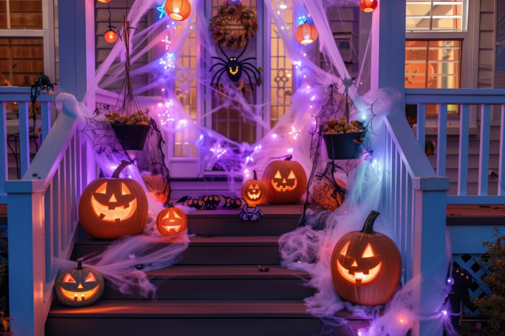 Due sono i modi per abbellire in occasione di Halloween l’ingresso esterno: uno più classico – e sobrio – e uno in versione più horror. Partiamo da quest’ultimo. Se è vero che un intramontabile must have della festa sono le zucche, è altrettanto comune decorare impiegando elementi dal fascino, per così dire, meno bucolico. Le ragnatele – con annessi ragni – sono infatti l’altra decorazione imprescindibile, da accompagnare con spaventosi scheletri e fantasmi di ogni dimensione e materiale da collocare rigorosamente sul portone e nelle immediate vicinanze. Zombie, vampiri o fantasmi potranno essere facilmente ricreati utilizzando un manichino o un fantoccio senza testa. Infine, sempre a proposito di porte d’ingresso, un’altra idea potrebbe essere quella di applicarvi sopra decorazioni in cartone (fatte con un veloce e poco impegnativo fai da te) che riproducano spaventose facce. Un’idea in più riguarda l’illuminazione: esistono in commercio fili di luci LED proprio a forma di zucca (a batteria, quindi senza neppure il bisogno di prese elettriche), ideali per illuminare il patio d’ingresso o qualsiasi altra zona esterna della casa.