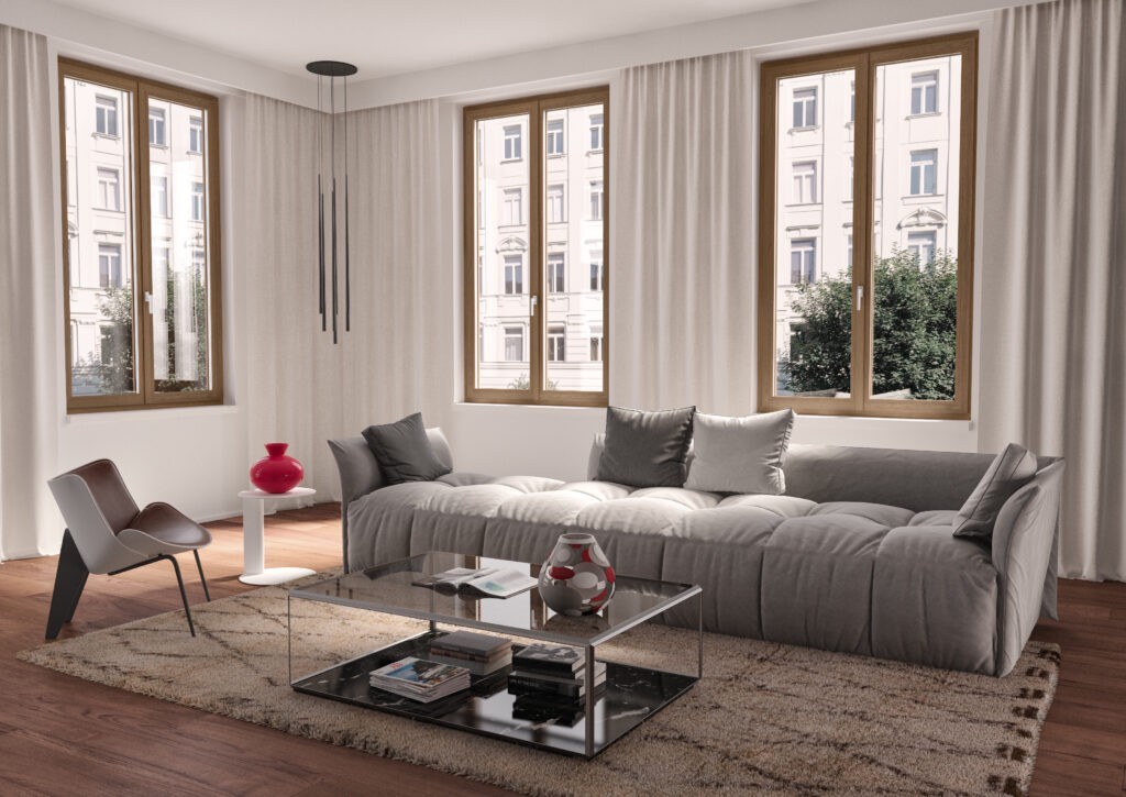 Oknoplast offre inoltre una gamma di finiture versatili, ideali per adattarsi a questo stile. Tra i colori standard, le finiture chiare, per esempio il bianco o l’avorio, esaltano la luminosità dell’ambiente e creano una base neutra che permette di giocare con un arredo dai colori accesi e con accessori vibranti. Le pellicole effetto legno della gamma Eco Natura per le finestre in PVC di Oknoplast, come il rovere spazzolato o il noce naturale, sono invece perfette per chi desidera un’atmosfera più calda e naturale, in armonia con materiali come rattan, cotone e lino, tipici dello stile boho chic. All’interno della gamma di Colori Soft troviamo numerose sfumature di grigio, ideali per chi vuole dare un tocco contemporaneo alla propria casa, spezzando la palette cromatica neutra con un elemento elegante e raffinato. Inoltre, questa linea di rivestimenti è composta da speciali pellicole dal finish opaco per uno splendido effetto velluto che permette di creare un gradevole contrasto con l’arredamente boho chic.