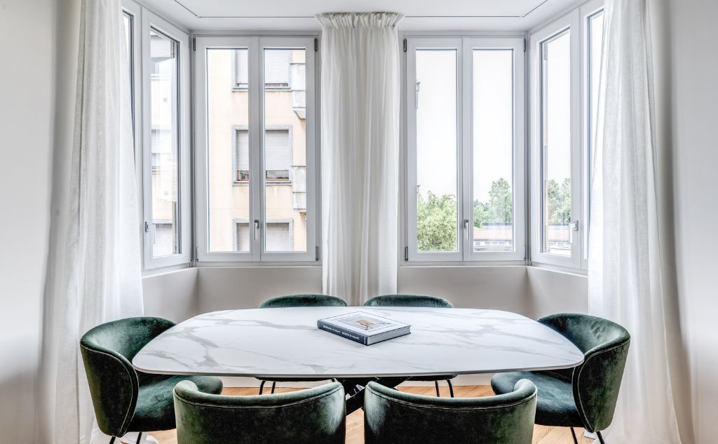 Un ambiente raffinato e funzionale in una zona esclusiva dove il classico convive con il moderno, grazie anche alla scelta degli infissi Oknoplast.