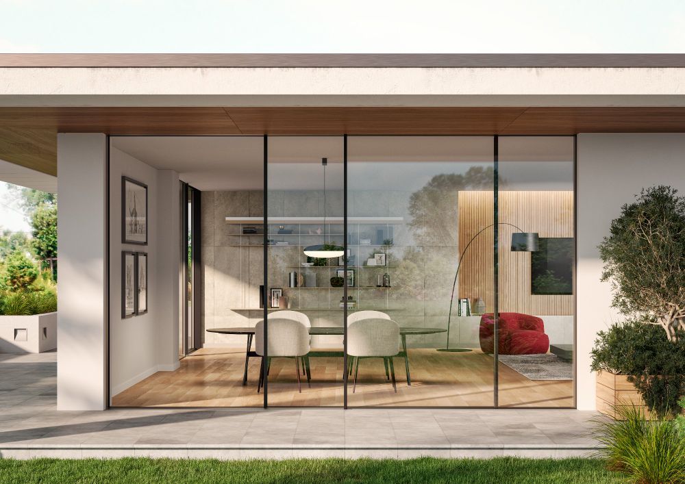 Grazie alla possibilità di incassare lo scorrevole nel pavimento, la soglia può essere a filo pavimento. Questo elimina il rischio di inciampo e rende il passaggio tra interno ed esterno fluido e senza interruzioni.